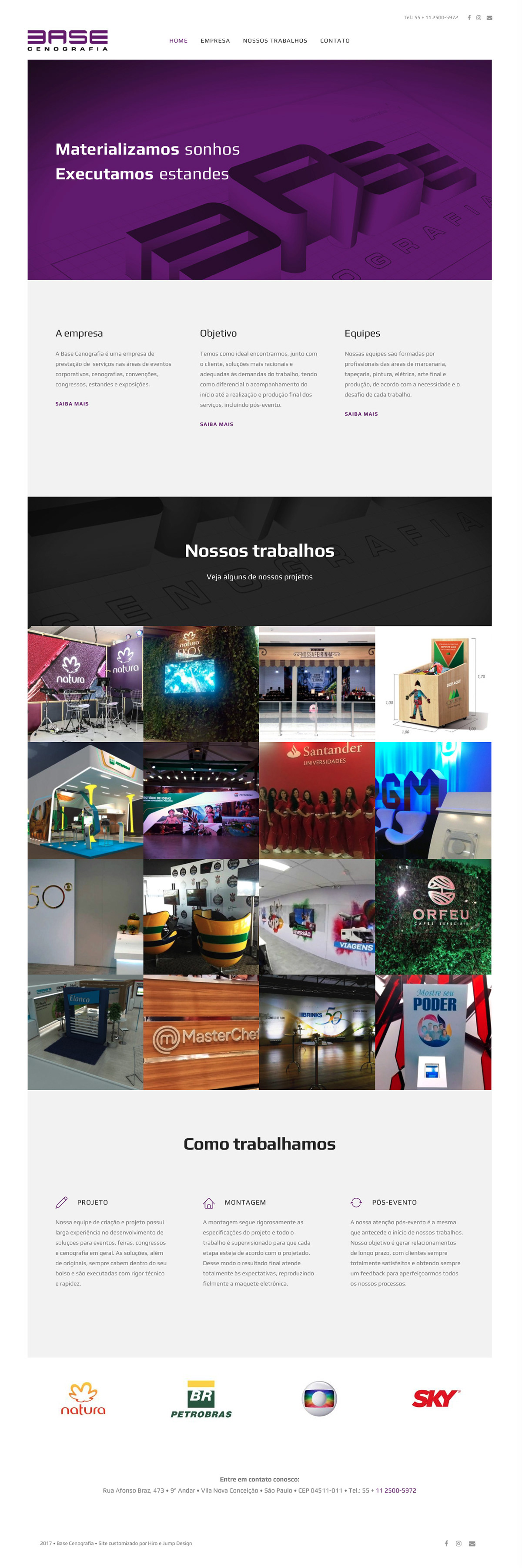 Website em parceria com a Jump Design para divulgação da Base Cenografia.